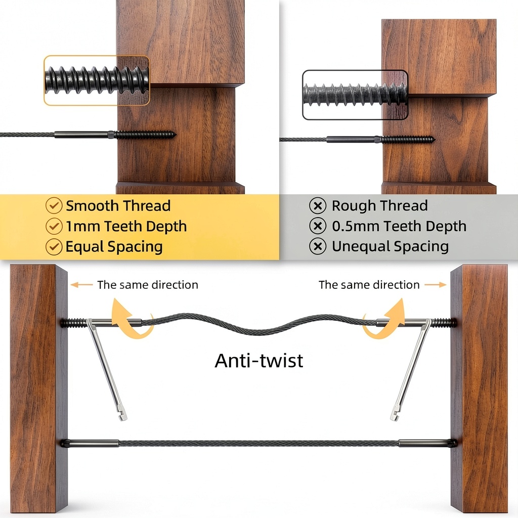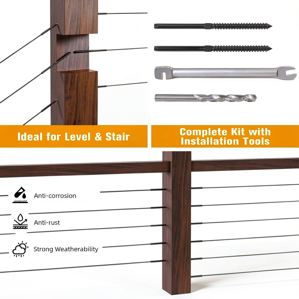 These black swage lag screws are perfect for outdoor and indoor settings, including residential decks, stair railings, balconies, and commercial spaces. They cater to DIY homeowners seeking a modern, durable railing solution and professional contractors requiring reliable hardware for projects. Suitable for both new installations and renovations, the screws handle various wood types and environmental conditions, from coastal areas with high salt exposure to urban settings with fluctuating weather.