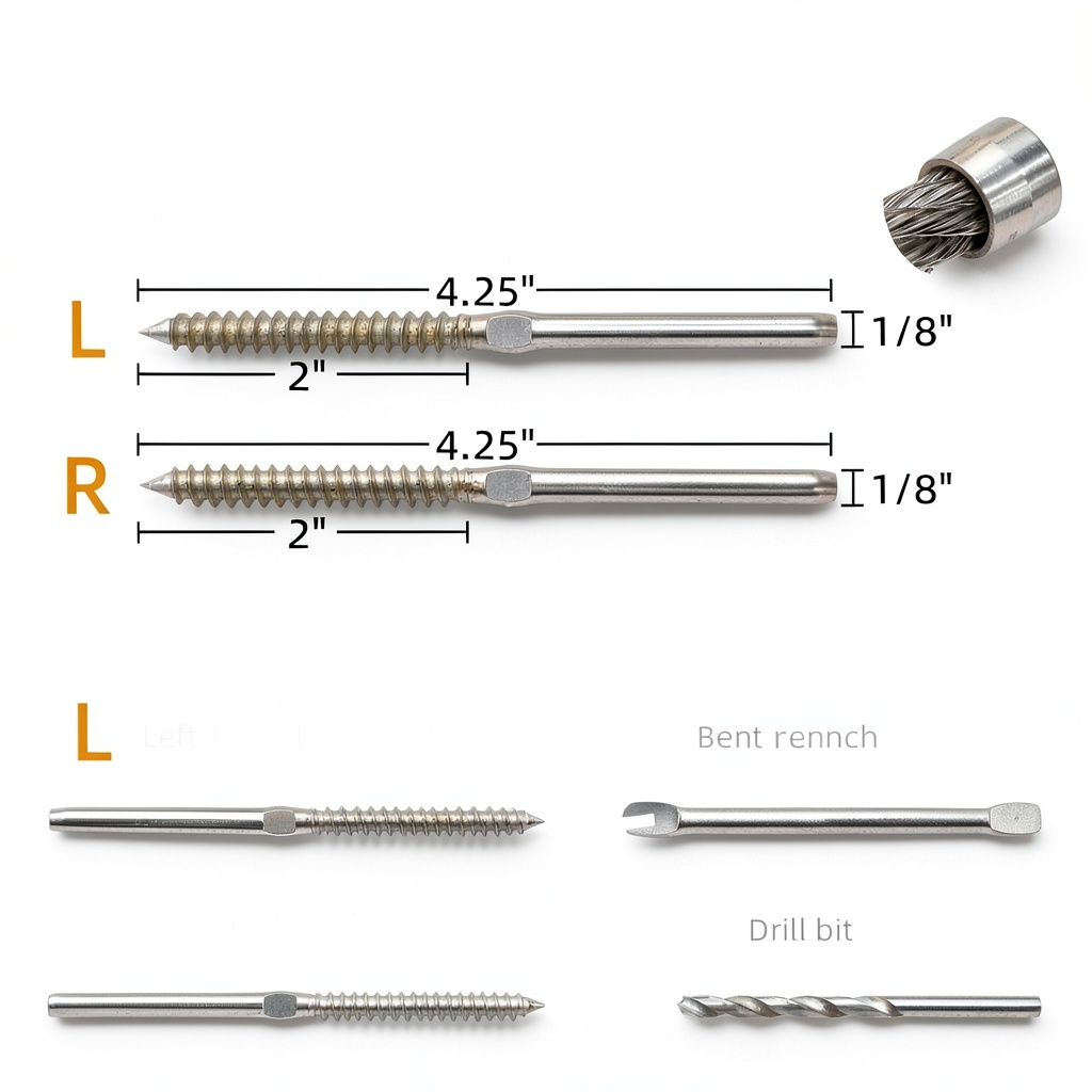 The package includes the Swage Lag Screws and is designed for straightforward setup, though additional tools like cables and posts may be required based on your project needs.