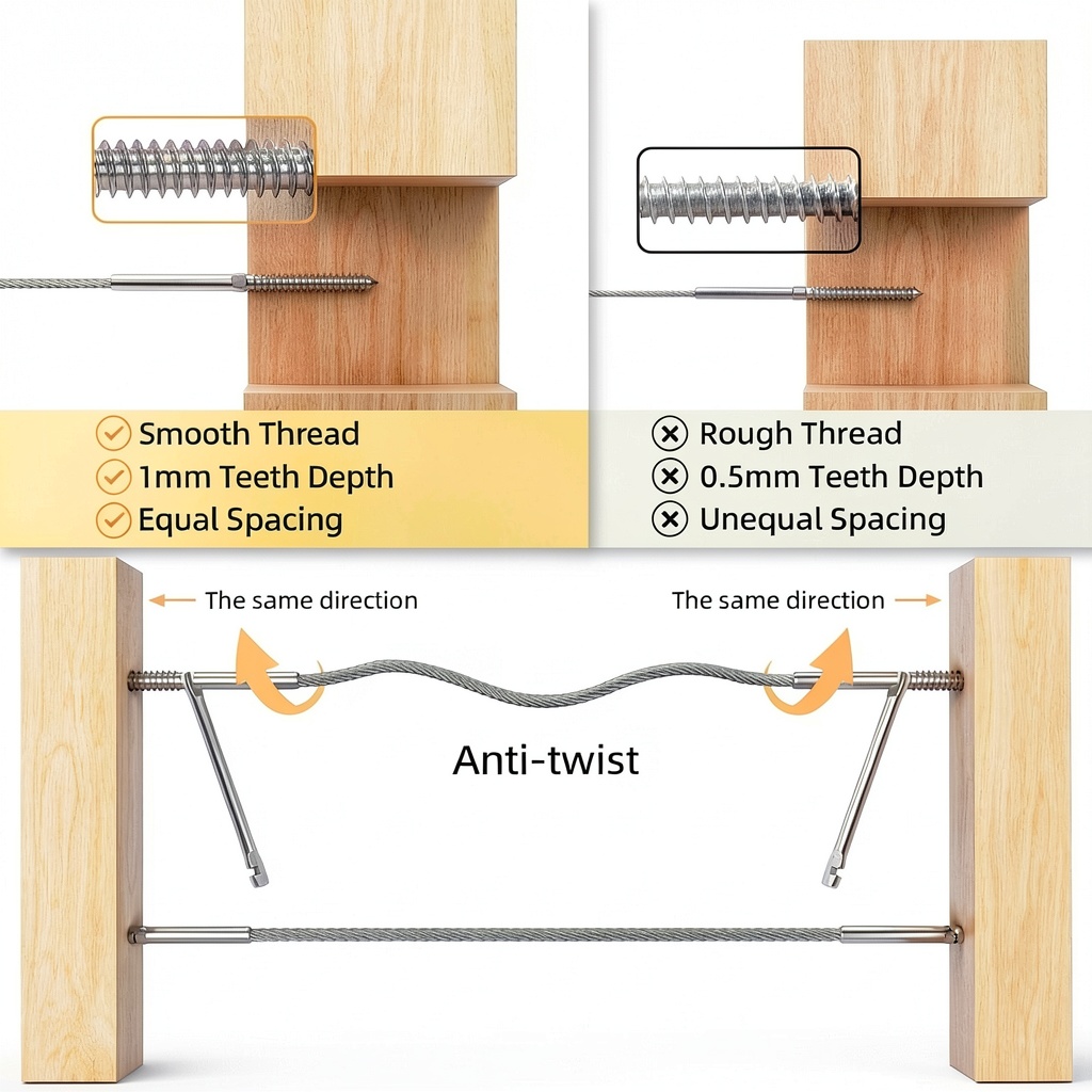 These Swage Lag Screws are ideal for outdoor and indoor settings, including decks, balconies, stairs, and fences, where cable tensioning is required for safety and aesthetics. They cater to DIY homeowners seeking to enhance their spaces with modern railing systems and professional contractors who need robust hardware for commercial projects. For optimal performance, maintain a maximum distance of 16 feet between end posts, with post spacing not exceeding 4 feet and cable spacing within 4 inches to ensure structural integrity.